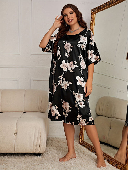 Pijama Elegantă din Satin cu Imprimeu Floral - Model 483