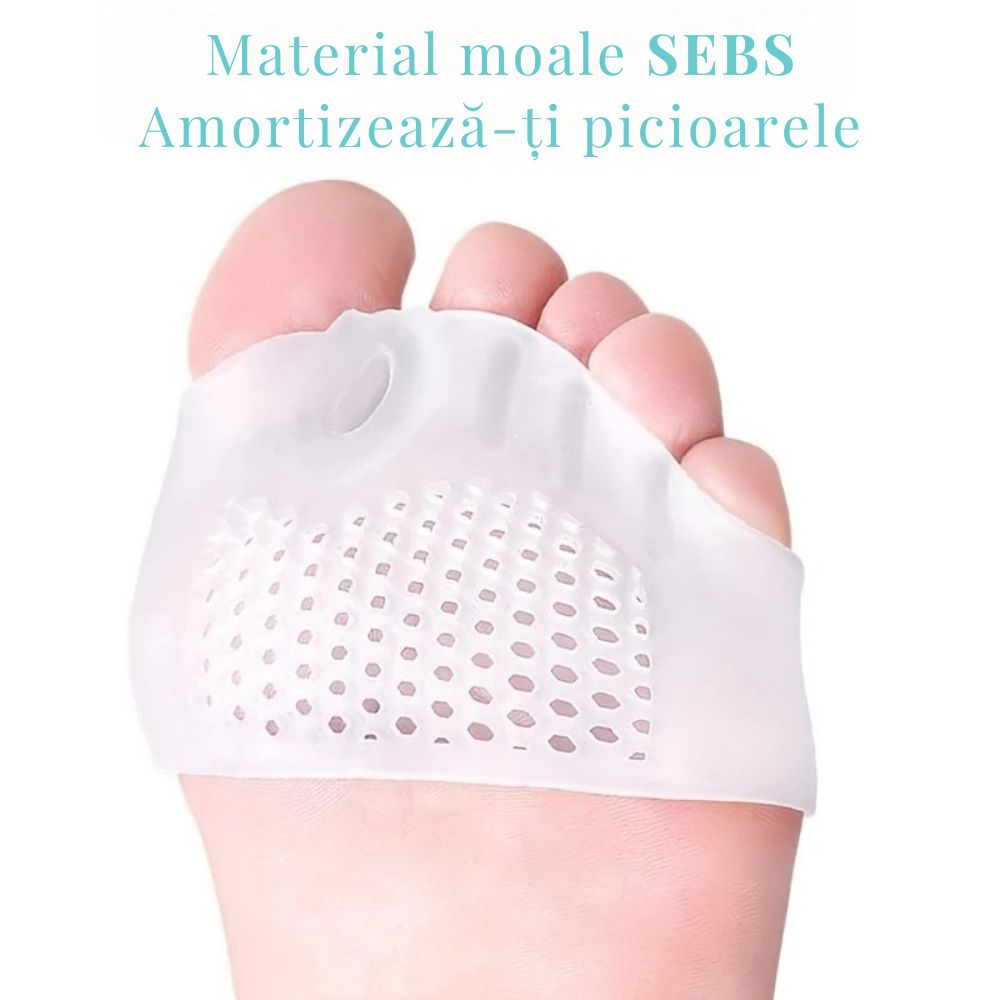 Un compus moale, elastic și durabil, fără latex – ideal chiar și pentru persoanele cu piele sensibilă. Amortizează impactul în timpul mersului, reducând presiunea din zona metatarsiană.